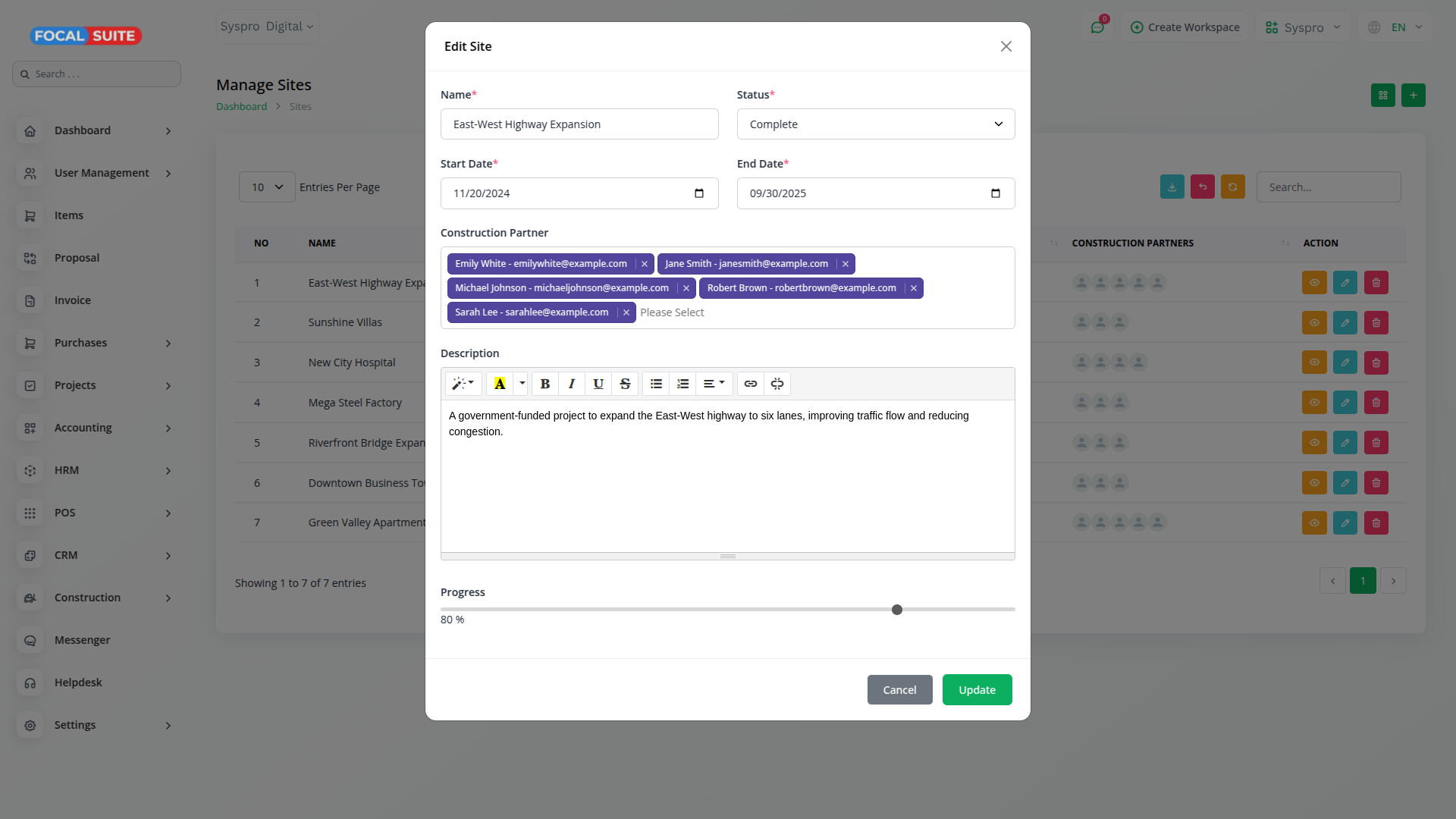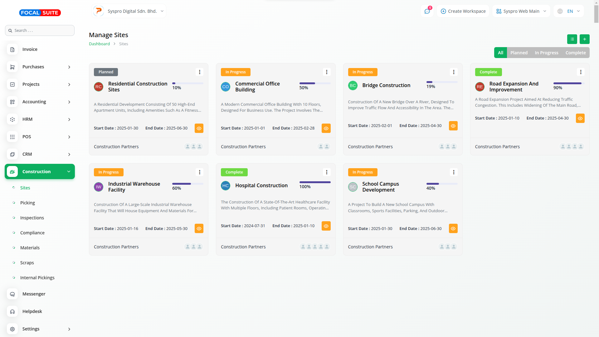 Easily manage construction projects, monitor progress, and improve team collaboration with Focal Suite’s Construction Management module.